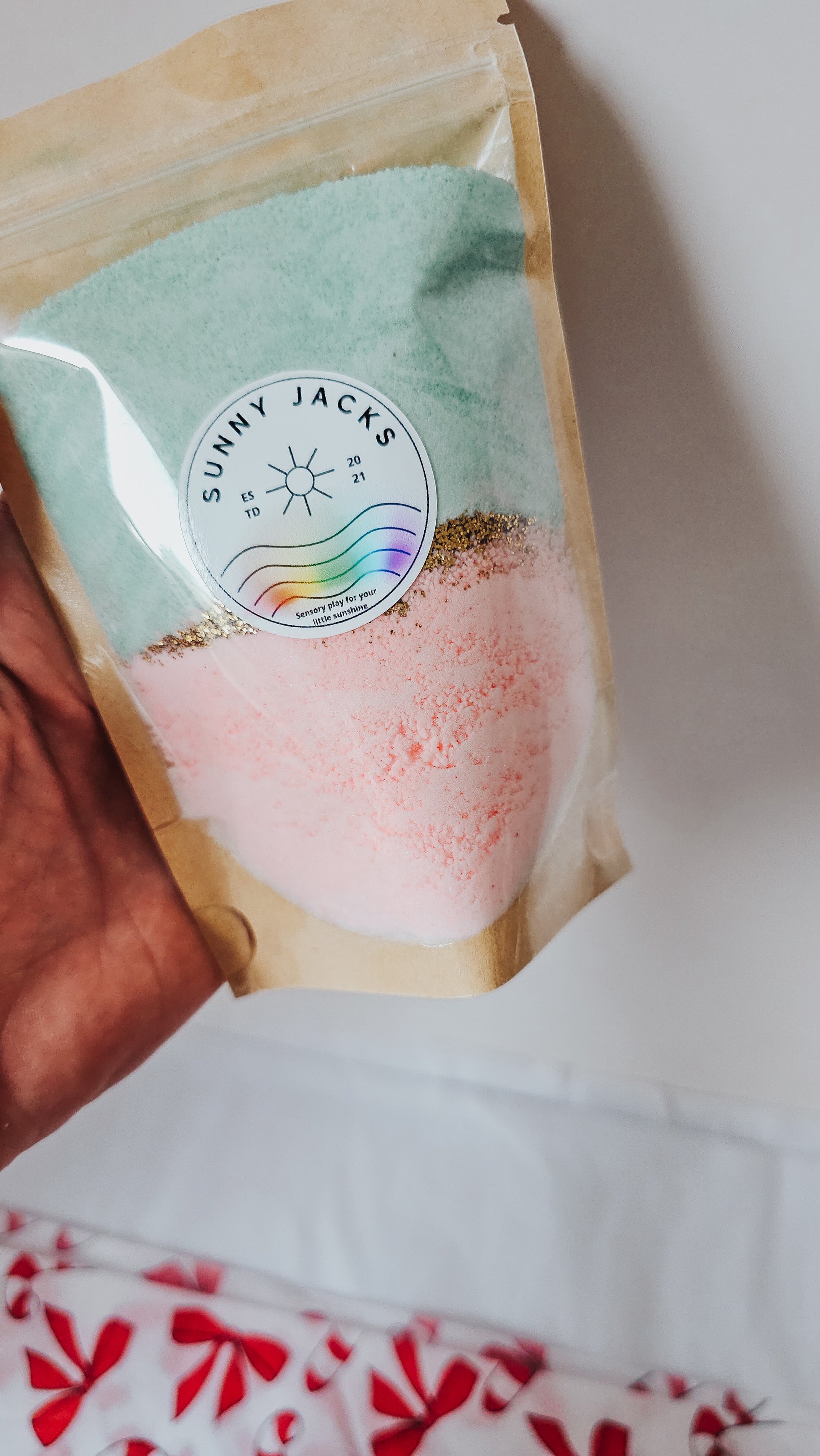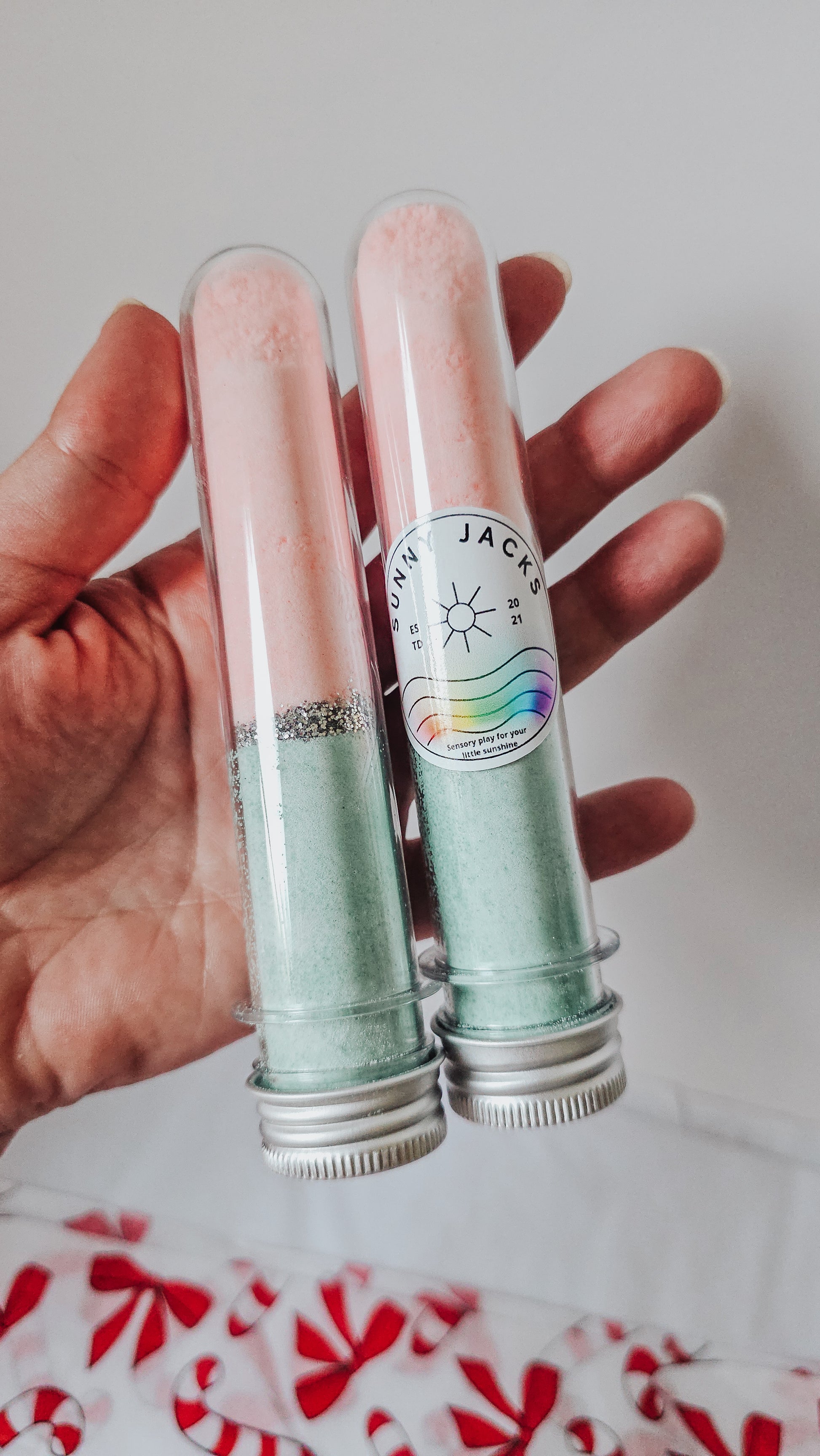 This magical fizz mix combines red and green fizzing goodness with a sparkly layer of glitter through the middle, making it a sensory experience like no other.